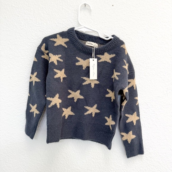New with tags, navy sweater with light brown star print. Size 4-5 years. Very soft.