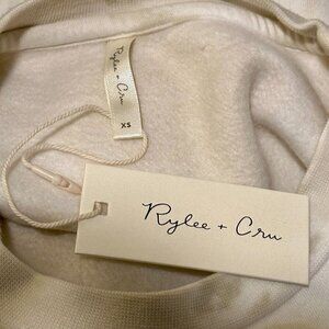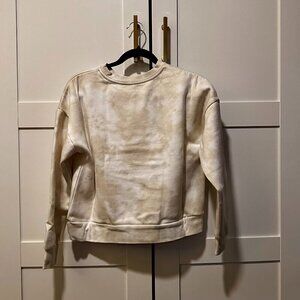 This Rylee & Cru Tie Dye crew neck is a loose fit pullover sweatshirt in a super soft and cozy sweatshirt fabric. The color is shell- a beautiful and subtle ecru tone. It matches the mini me version of the same sweatshirt perfectly and coordinates well with many similarly tones kids R+C pieces