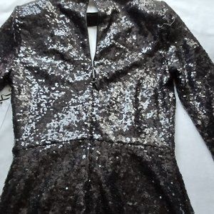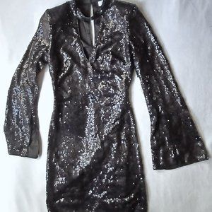 CoRyse The Label Black Sequin Cocktail Party Dress Women's Flare Sleeve Small