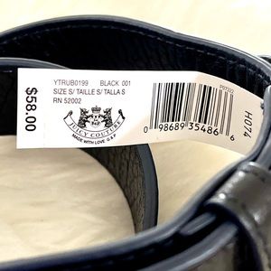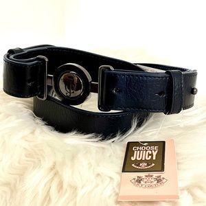 NWT size small leather vintage clasp O ring belt, by Juicy Couture. You will NOT find another new with tags!! Super rare and hard to find!! Super perfect and thick leather that you can only find vintage!! Superb quality!! Features silver or gunmetal tone hardware. Price reflects is quality and rareness!! Measures total belt length is 29 and approximately 1/4” in. Width is 1” and almost 1/4”. Clasp width is 2.5” wide.