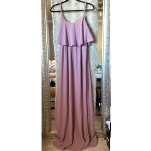 Show Me Your MuMu Caitlin Ruffle Maxi Dress in Antique Rose Chiffon purple pink mauve color