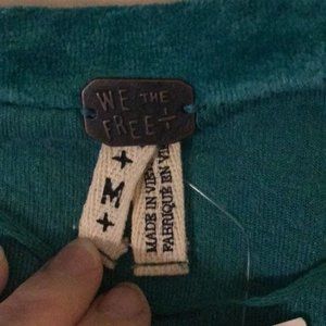 Blousy sleeves and oversized fit but waist is fitted. Color is Sea.