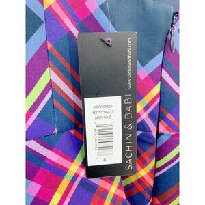 NWT SACHIN + BABI Dress Audra Plaid Midi Party Navy Blue Fit Flare 8