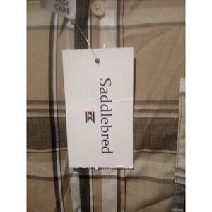 NWT SADDLEBRED Men's Brown Plaid BUTTON FRONT SHIRT Easy Care Classic Fit Medium