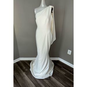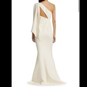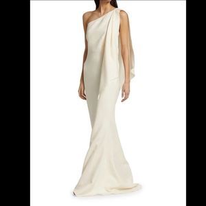 NWT SAFIYAA Elvie Stretch Crepe Draped One-shoulder Gown In Ivory