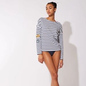 NWT SAINT JAMES / SOLID & STRIPED Drop-Shoulder Breton Shirt Cotton XS Small