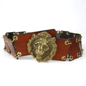 NWT SAINT LAURENT Lion Buckle Brown Leather and Chain Link Belt, Vintage Style!