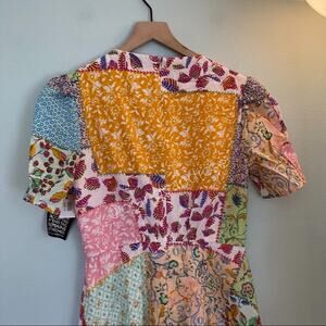 I really love this stunning designer SALONI brand new with tags RARE and sold out Lea short sleeve V neck button front mini dress with the most beautiful and unique floral/fruit/patchwork design, sure to get you so many compliments whenever you sport it!