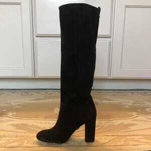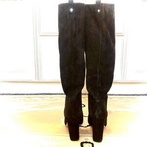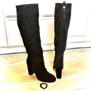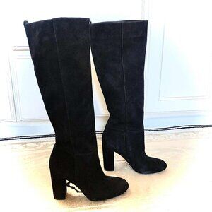 Caprice Black Suede Tall Boots are beautifully crafted from genuine suede leather in an elegant silhouette with a sexy 3.5”H covered block heel and a sliver SE logo accent snap on the back…