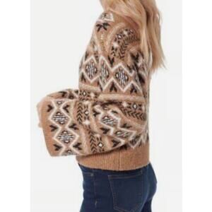 Elevate your cozy style with this stunning SAM EDELMAN Fair Isle sweater! This sweater is brand new with tags and ready to become a staple in your wardrobe. The beautiful Fair Isle pattern adds a touch of classic charm, while the wide sleeves and scoop back bring a modern, fashionable twist.