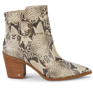 NWT SAM EDELMAN Leonia Buckle Pointed Toe Snakeskin Ankle Booties