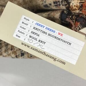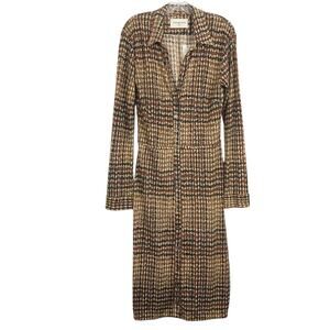 NWT SAMANTHA SUNG Dress US 6 Brown Wool-Silk Knit Houndstooth Button-Up”Jenny”