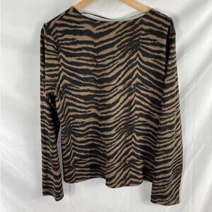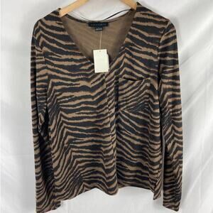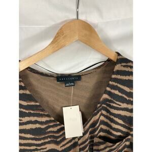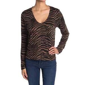 NWT SANCTUARY V-neck Cozy Pocket Sleeve Top In Brown Zebra Size XS