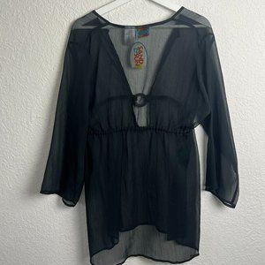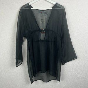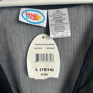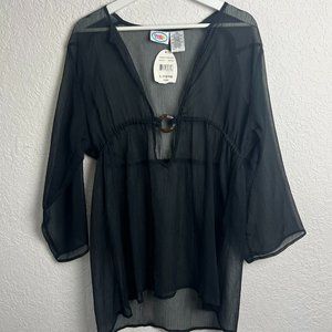 NWT SAND N SUN Womens L Black Beach Swimsuit Sheer Coverup Long Sleeve Flowy