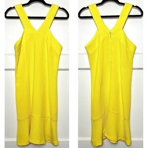 NWT SANDRO Textured Sleeveless Halter V-Neck Ruffle Flounce Hem Sheath Dress L