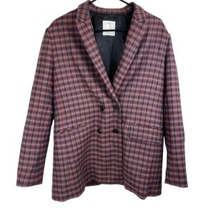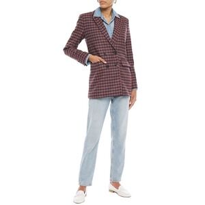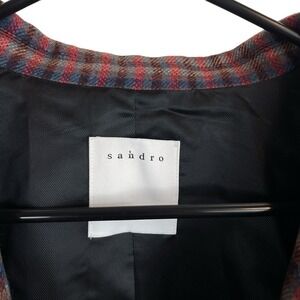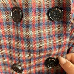 NWT SANDRO Toms Double-Breasted Checked Wool-Blend Blazer Multicolor Size 42