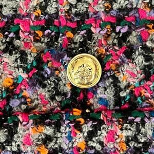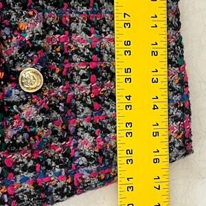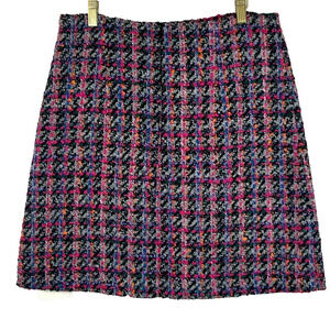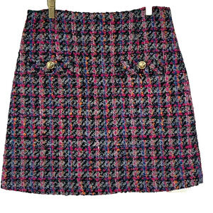 NWT Sandro Tweed Mini Skirt is a stylish women's garment in a multicolor wool blend. This skirt features a high rise and a zip closure, making it suitable for various occasions such as parties, casual outings, and workwear. The tweed fabric adds a preppy touch to the design, while the lined interior ensures comfort and quality. Perfect for fashion-forward women looking for a chic and versatile addition to their wardrobe.