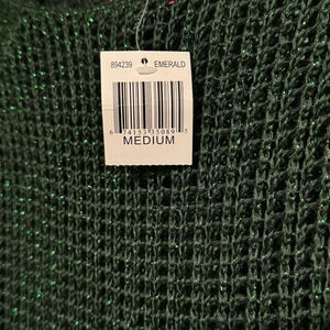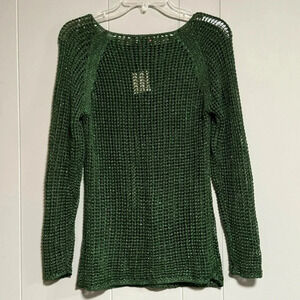 NWT SAY WHAT? Open Knit Long Sleeve Emerald Green Metallic Sweater Size Medium