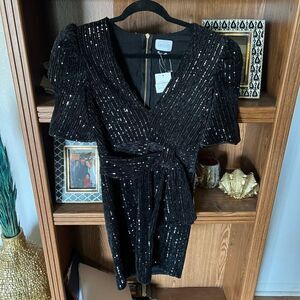 NWT Saylor fauna black sequins short sleeve mini holiday New Year’s party dress. Excellent condition.