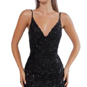 NWT SCALA 60387 Prom Dress Beaded Black Size 0