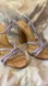 Elegant lavender heels with cork block heel. Stylish and comfortable for any event.