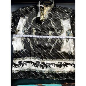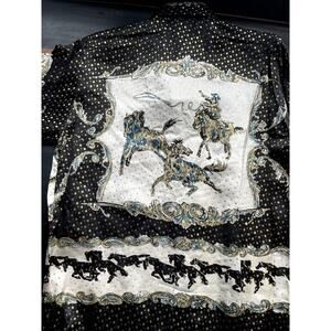 NWT SCORPIO Western Print Silk Blend Button Down Blouse SIze XL