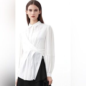 NWT SDEER Women's Asymmetrical Blouse size small Color- white