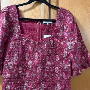 NWT SEA Famke Smocked Heart Neck Midi Dress In Magenta Sz 10