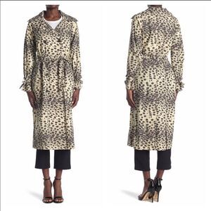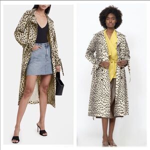 SEA NY Leo white leopard double breasted cotton maximalism midi trench coat