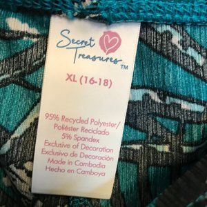 Add a stylish addition to your sleepwear collection with these Secret Treasures Pajama Sleep Shorts. These black and green jungle print shorts are made of soft satin fabric that is lightweight and perfect for summer, fall, and spring seasons. Featuring pull-on closure and an elastic waistband, these XL shorts look new and are easy to wear and care for with machine washable garment care. The lace hem and accent details add a touch of elegance to the overall design of the shorts.