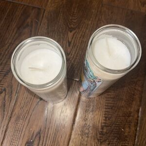 Set of two vibrant prayer candles featuring a religious design. Perfect for spiritual decor.no flaws . Unscented.