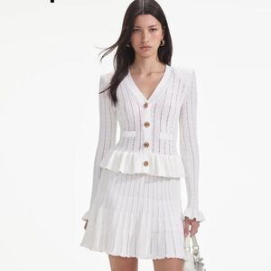 NWT SELF-Portrait WHITE KNIT PEPLUM MINI DRESS Medium