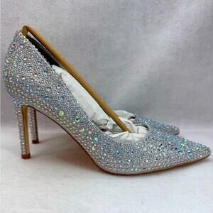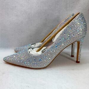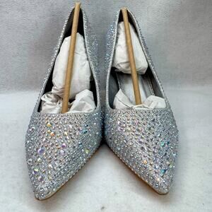 NWT SEQWL Silver Pointed Toe Heels 3.75” Pumps Rhinestone Embellishments size 8