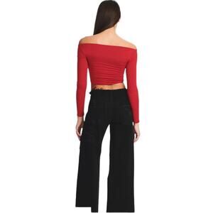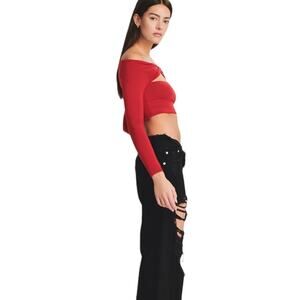 NWT SER•O•YA Red Cropped Ellis Top Long Sleeves Peek a Boo Cutout Detail Size XS