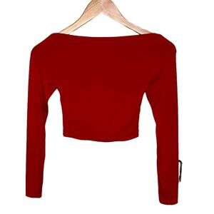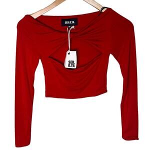 NWT SER•O•YA Red Cropped Ellis Top Long Sleeves Peek a Boo Cutout Detail Size XSmall