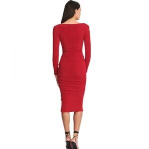NWT SER•O•YA Red Eden Dress Bodycon Midi Long Sleeve Size XXSmall