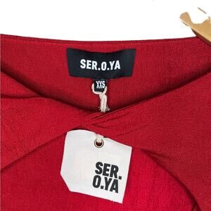 NWT SER•O•YA Red Eden Dress Bodycon Midi Long Sleeve Size XXSmall