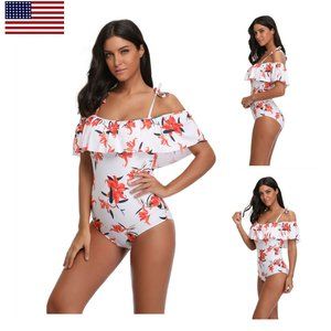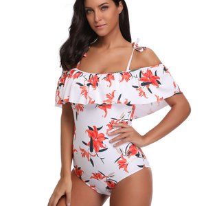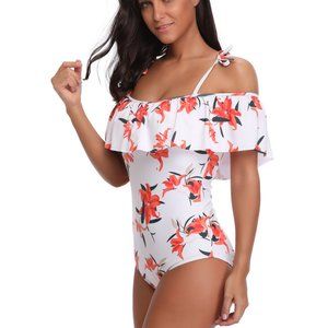 NWT SESY OFF SHOULDER RUFFLED ONE PIECE SWIMSUIT SMALL