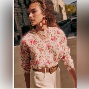NWT SEZANE Amaya Wool Floral Jumper ecru multi S mohair
