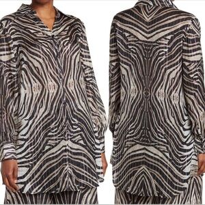 NWT SHAHIDA PARIDES Animal Print Zebra Metallic Button Down Shirt Sz M