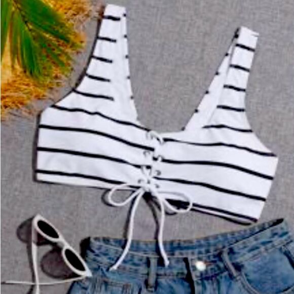 NWT SHEIN 2XL Black and White Striped Bikini Top