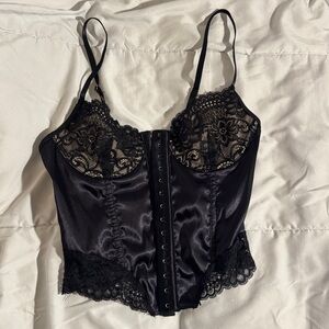 NWT SHEIN BAE Contrast Lace Hook Front Cami Top BLACK SIZE XS