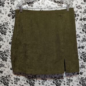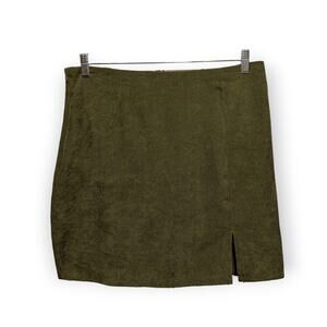 NWT SHEIN Curve Plus Army Green Zipper Side Split Hem Corduroy Skirt 14/1XL