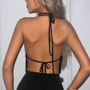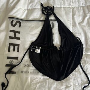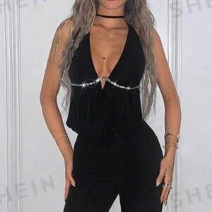 NWT SHEIN ICON Chain Detail Backless Halter Top SIZE XS COLOR BLACK & SILVER