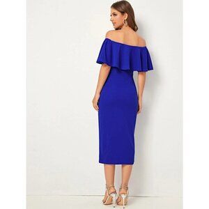 NWT SHEIN Off Shoulder Ruffle Trim Pencil Dress Size S Color Royal Blue