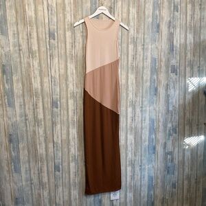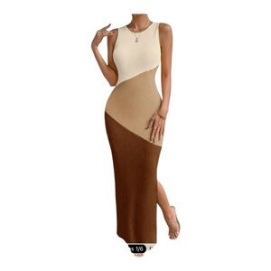 NWT SHEIN Relaxiva Round Neck Contrast Color Splice Slit Sleeveless Dress | S
