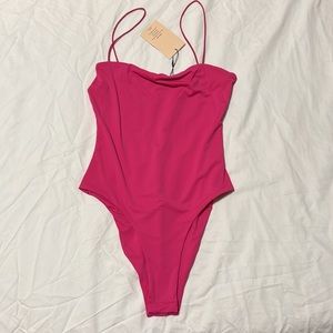 NWT SHEIN bae pink stretch bodysuit spaghetti strap xs hot pink Barbie