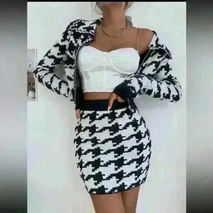 NWT SHEIN houndstooth black and white 2 piece skirt set size have some stretch to it
