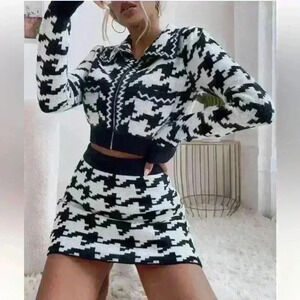 NWT SHEIN houndstooth black and white 2 piece skirt set size