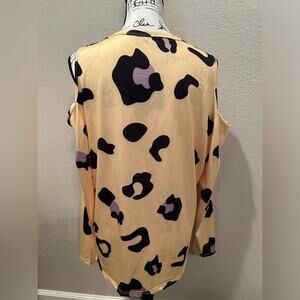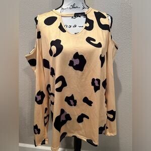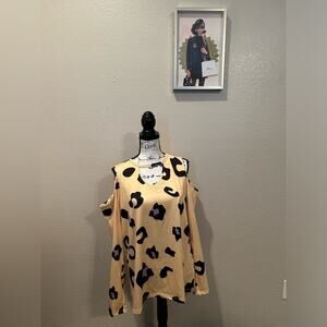 NWT SHEIN long sleeve yellow cheetah print cold shoulder top sz XL